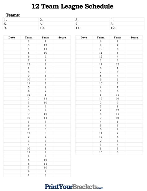 0 Response to "Read 12 team schedule template Kindle Editon"